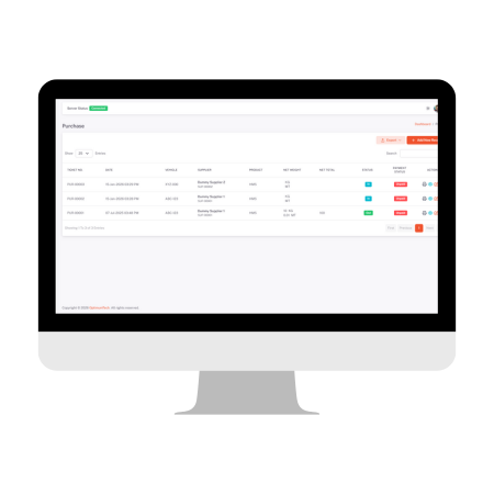 Incoming vehicles are automatically weighed using ScaleX’s integrated weighbridge system. As the vehicle enters the facility, the gross weight is captured instantly without manual input.
