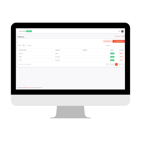 ScaleX allows users to create and manage purchase and sales records directly from the system. All transactions are logged securely in a centralized dashboard with real-time updates.